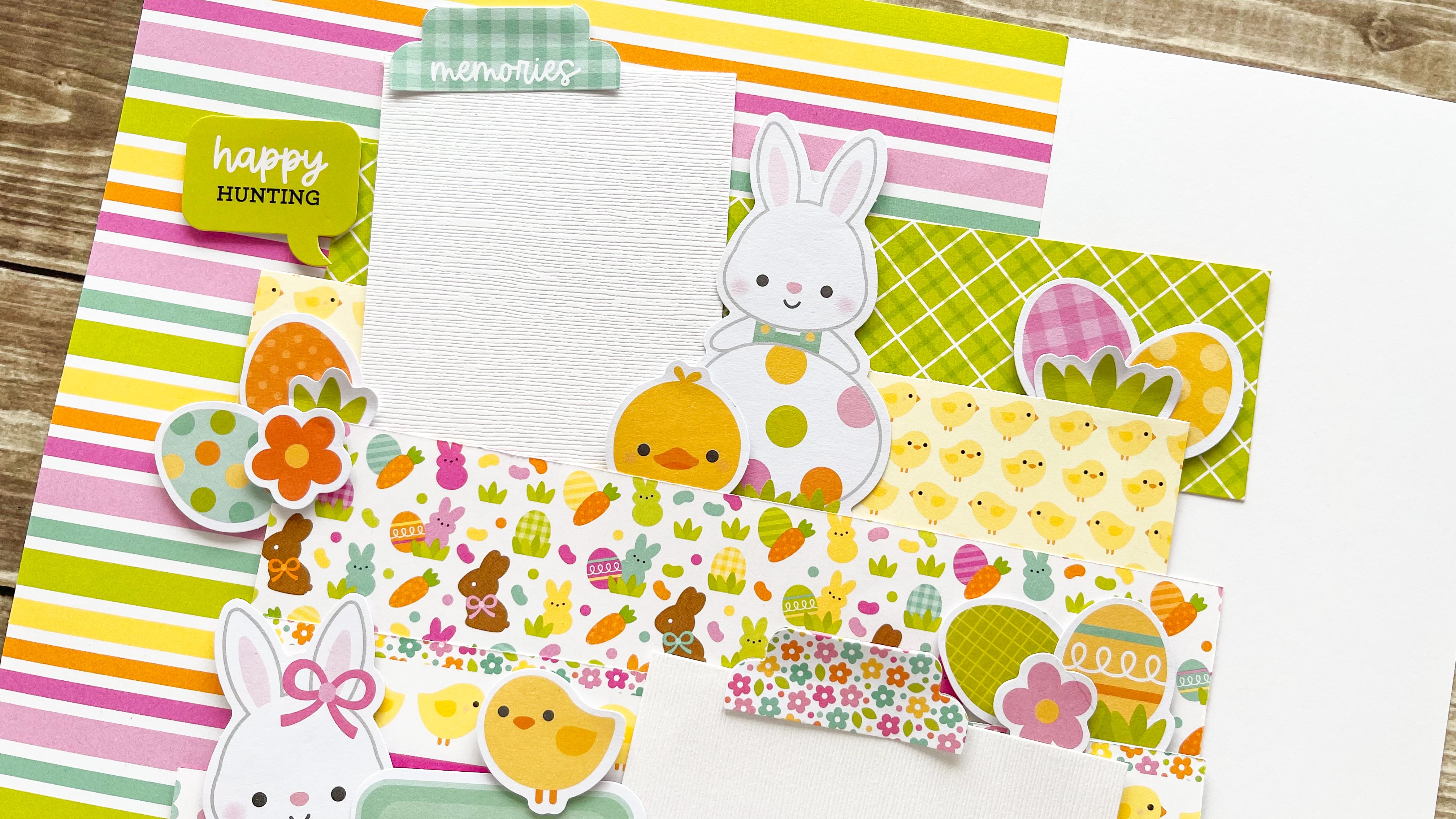 Prepare for Easter fun with the Bunny Hop Easter Page Kit by Mary-Ann Maldonado! With this kit, you'll receive 8 adorable pages featuring Doodlebug's Bunny Hop collection, complete with Odds & Ends, Bits & Pieces, Carrot Top Doodle Pop, & Springtime Peeps Doodle Pop, & Egg-stra Special Doodle Pop. In addition, you'll get a 12x12 Paper pack with Springtime Stripe & Easter Basket designs, as well as 4 white cardstock sheets. Please don't wait to start creating unique Easter scrapbook pages that will delight everyone who sees them. Order your Bunny Hop Easter Page Kit today and let the Easter fun begin!